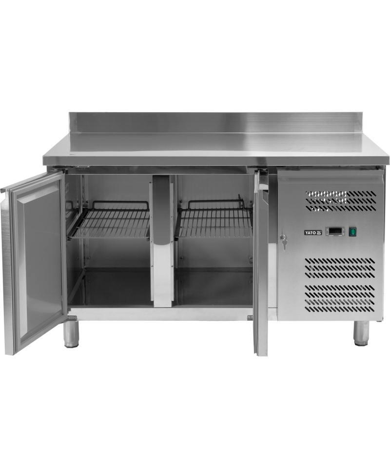 Przedstawiamy dwudrzwiowy stół chłodniczy z funkcjonalnym blatem roboczym i rantem, model YG-05250, renomowanej marki YATO.