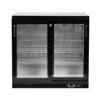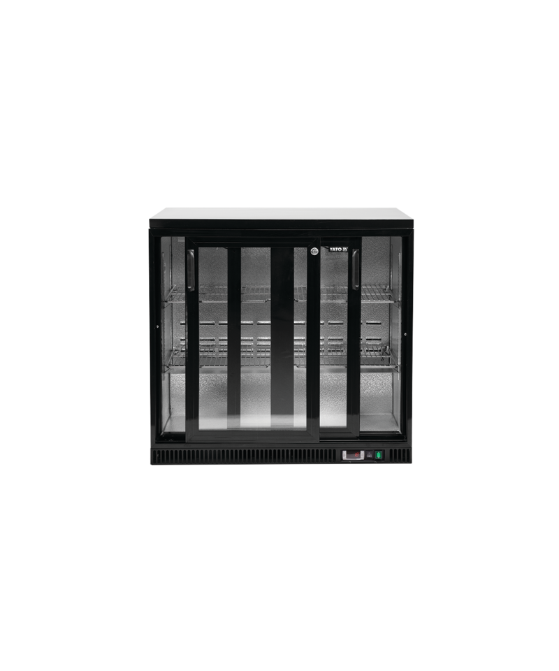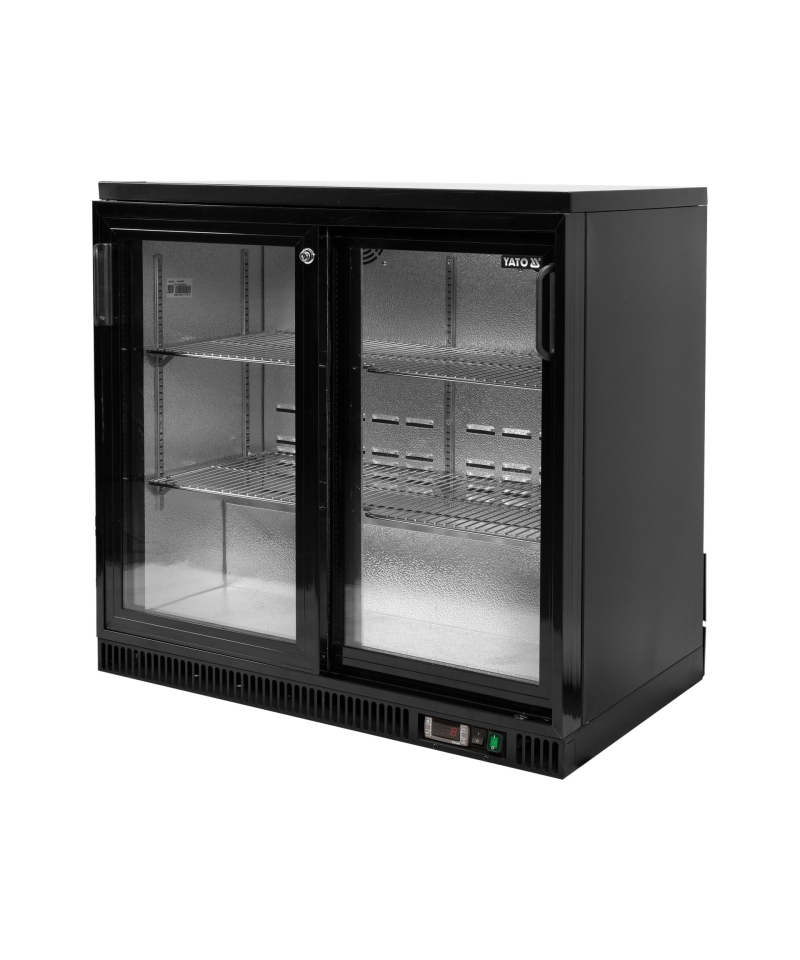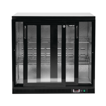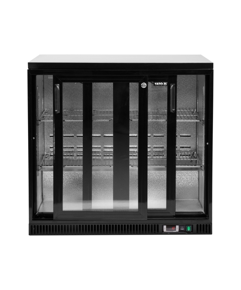 Przedstawiamy profesjonalną witrynę chłodniczą na butelki YATO YG-05356, wyróżniającą się eleganckim designem i dwoma praktycznymi drzwiami przesuwnymi.