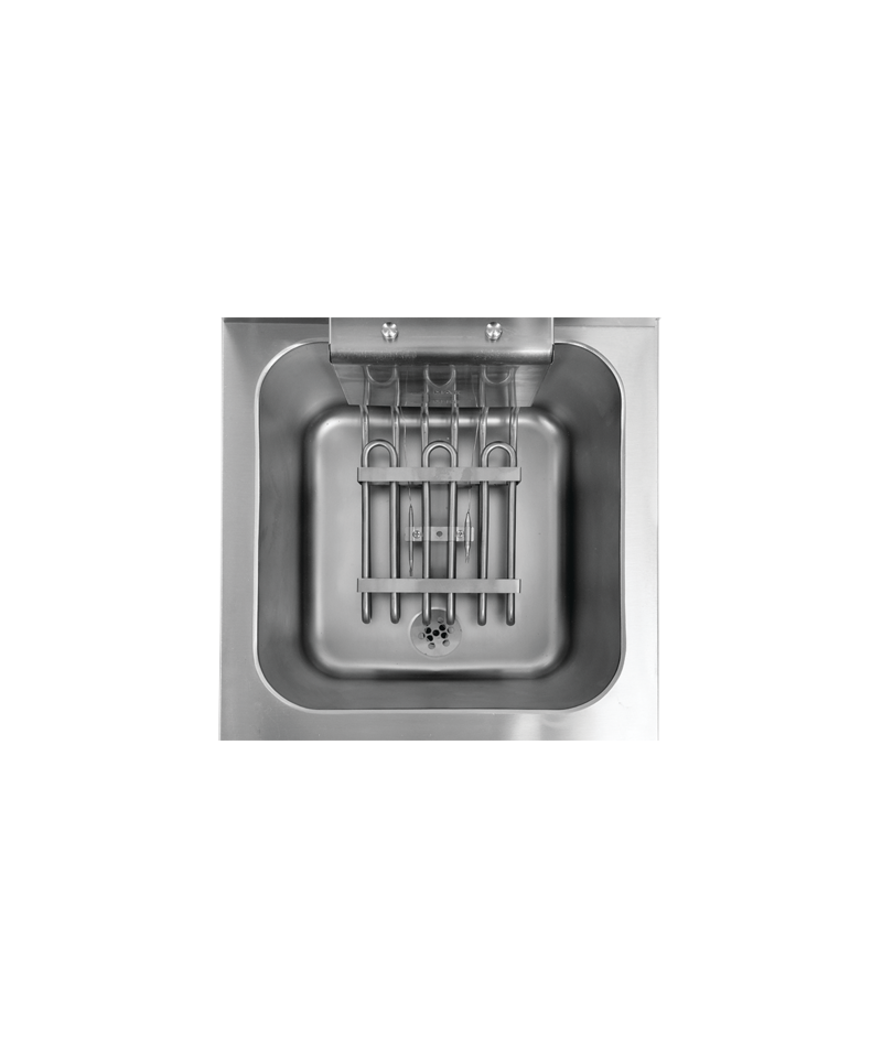 Grzałka o imponującej mocy 5,0kW jest precyzyjnie sterowana za pomocą intuicyjnego potencjometru, zintegrowanego z panelem sterującym. Umożliwia to płynną regulację temperatury w szerokim zakresie od 60 do 200℃. Zainstalowany bryzgoszczelny wyłącznik zapewnia wygodne i bezpieczne odłączenie urządzenia bez konieczności wyciągania wtyczki z gniazdka. Co więcej, panel sterujący został wyposażony w solidną osłonę zabezpieczającą z wyjątkowo trwałego poliwęglanu, skutecznie zabezpieczającą przed zachlapaniem olejem podczas intensywnego użytkowania, co znacząco ułatwia utrzymanie frytownicy w nienagannej czystości. Innowacyjna, wyjmowana grzałka może być zawieszona na specjalnych uchwytach, co pozwala na swobodne ociekanie oleju z powrotem do zbiornika. Urządzenie posiada również zaawansowany system bezpieczeństwa, który automatycznie wyłącza grzałkę w przypadku jej wyjęcia ze zbiornika, chroniąc ją przed przegrzaniem przy temperaturze przekraczającej 260℃.
