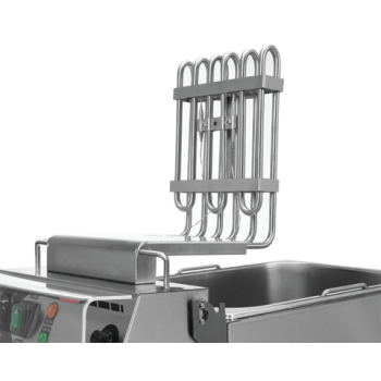 Frytownica YATO jest dostarczana z dwoma wyjątkowo wytrzymałymi koszami, każdy o wymiarach 250x230x120mm. Kosze wyposażono w ergonomiczną, plastikową rękojeść, która pozostaje nienagrzewająca się, zapewniając komfort i bezpieczeństwo użytkowania. Specjalnie zaprojektowane zaczepy umożliwiają wygodne zawieszenie koszy bezpośrednio nad zbiornikiem, co efektywnie minimalizuje ryzyko zachlapania blatu roboczego olejem. To rozwiązanie znacząco przyczynia się do utrzymania nienagannej czystości stanowiska pracy i skraca czas poświęcony na sprzątanie.