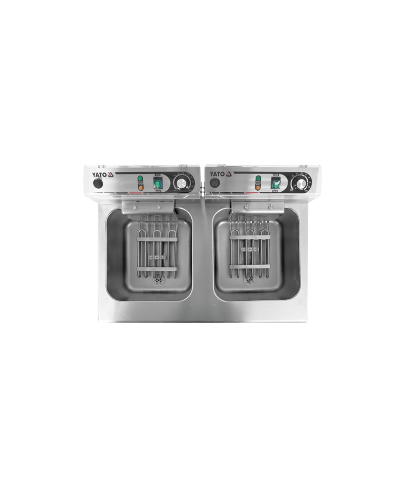 Przedstawiamy profesjonalną frytownicę dwukomorową wolnostojącą YATO YG-04638, wyposażoną w praktyczną szafkę i kranik spustowy. Urządzenie charakteryzuje się imponującą łączną pojemnością 2x11,5L, idealną do intensywnej pracy w gastronomii.