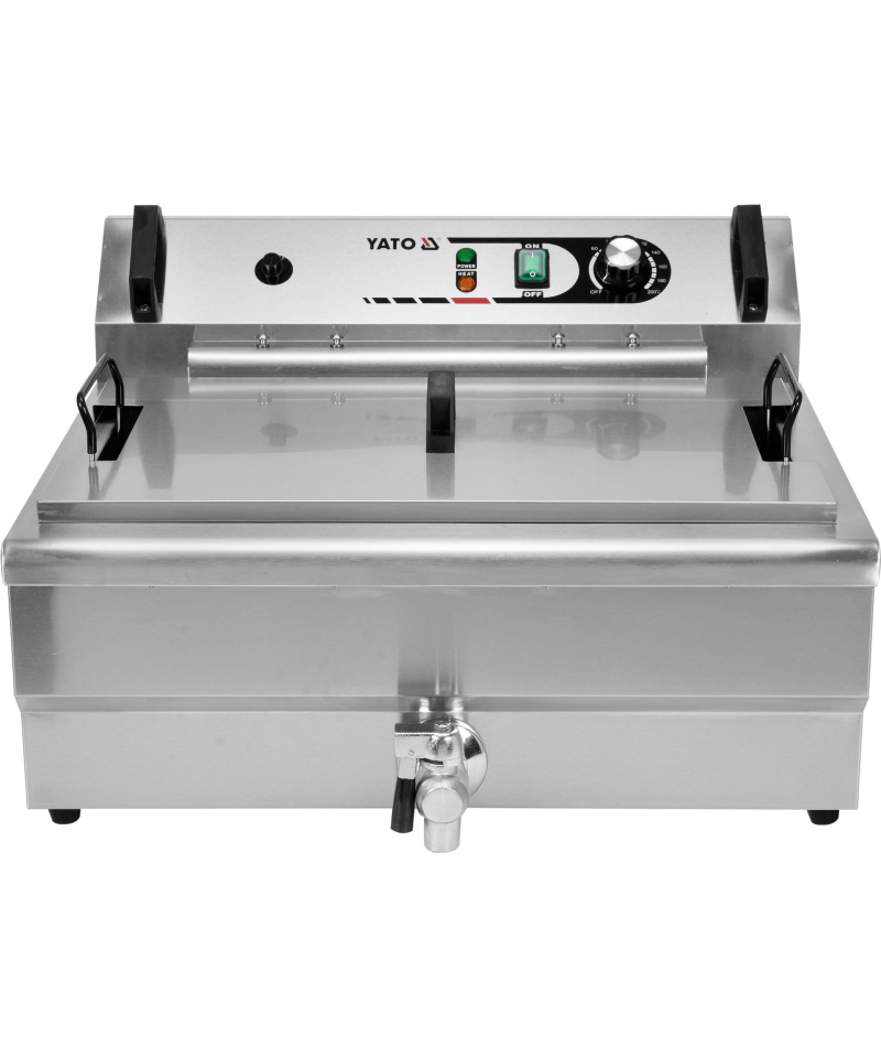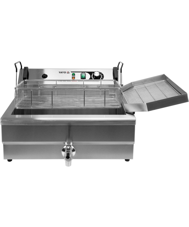 Profesjonalna frytownica z kranikiem spustowym, o imponującej pojemności 23L, marki YATO, model YG-04640.