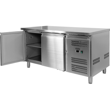 1 x drzwi skrzydłowe, 2 bloki 2 szuflad o wysokości użytkowej 345mm każda i 1 komora zlewowa 300x500x300mm. Cyrkulacja chłodnego powietrza i regulacja elektroniczna. Parownik obudowany