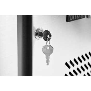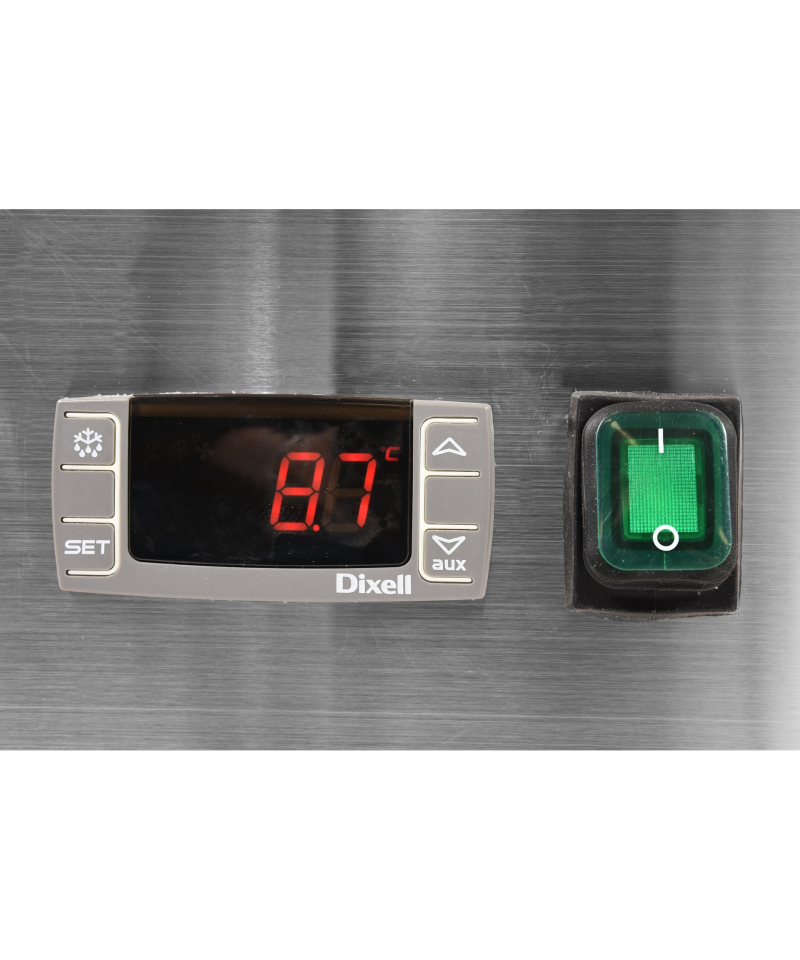 2 x drzwi skrzydłowe i 2 komory zlewowe 300x500x300mm. Cyrkulacja chłodnego powietrza i regulacja elektroniczna. Parownik obudowany blachą ze stali szlachetnej.