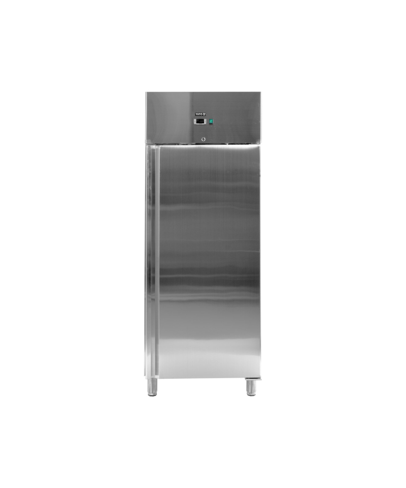 Szafa chłodnicza GN 2/1 z wymuszonym obiegiem powietrza, automat. odszranianiem i odparowaniem kondensatu gorącym gazem, z regulacją z wyświetlaczem cyfrowym. Wnętrze ze stali nierdzewnej. Agregat w formie monobloku umieszczony na górze urządzenia. Centralne chłodzenie z odpływem kondensatu.