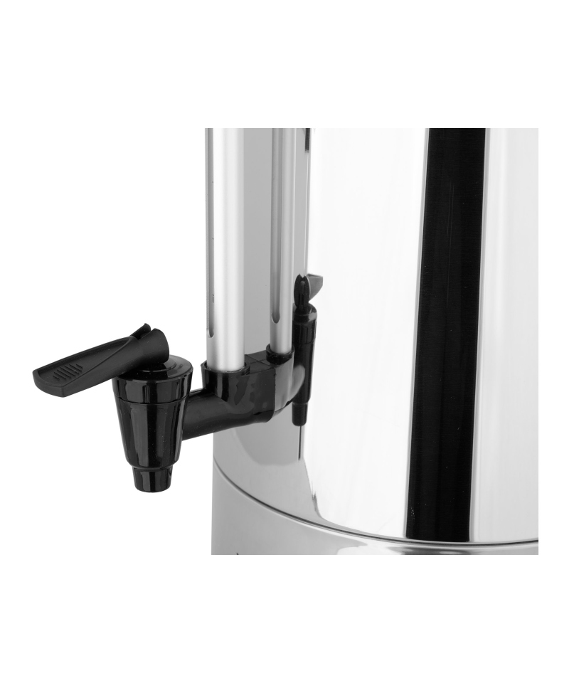 Ten profesjonalny warnik z podwójną ścianką to idealne rozwiązanie do szybkiego i efektywnego przygotowywania dużych ilości gorącej wody. Wykonany z wysokiej jakości stali nierdzewnej o lustrzanym wykończeniu, doskonale wkomponuje się w eleganckie wnętrza hoteli, sal konferencyjnych czy prestiżowych restauracji, podkreślając ich profesjonalny charakter.