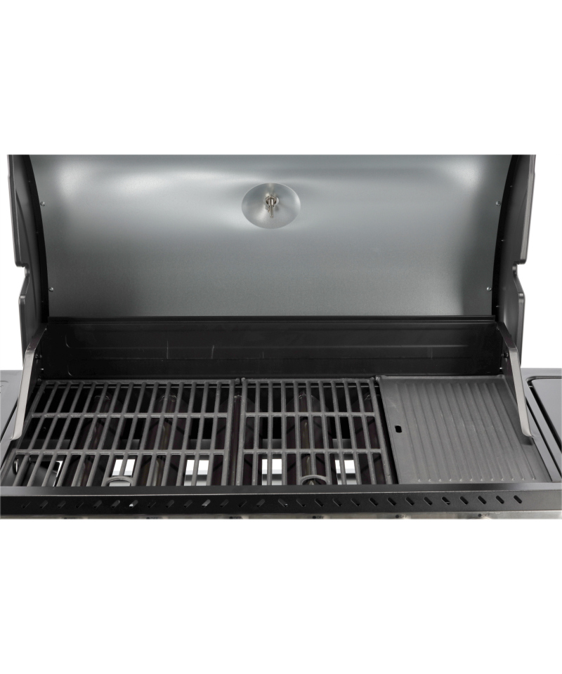 - PRECYZYJNA KONTROLA TEMPERATURY – Dzięki intuicyjnym pokrętłom, solidnej pokrywie, wielu palnikom oraz wbudowanemu termometrowi, masz pełną kontrolę nad temperaturą, co pozwala idealnie dopasować ją do każdego rodzaju mięs, warzyw czy serów.