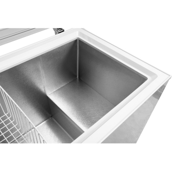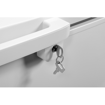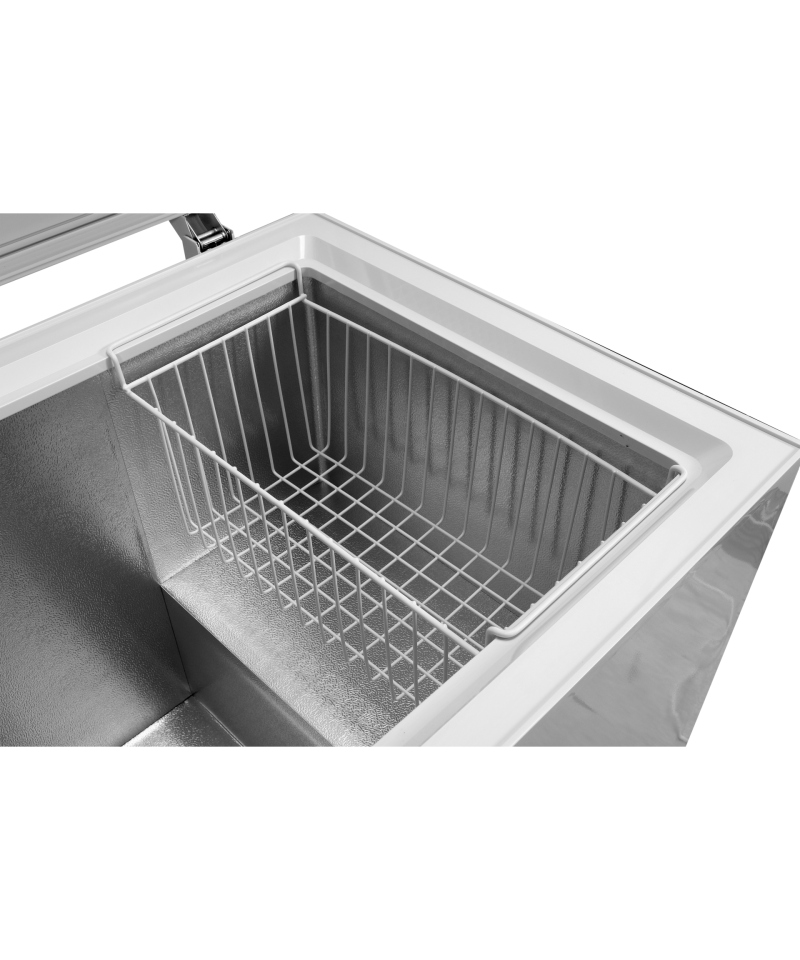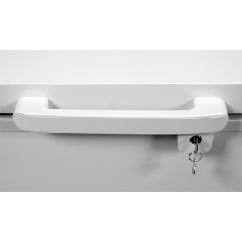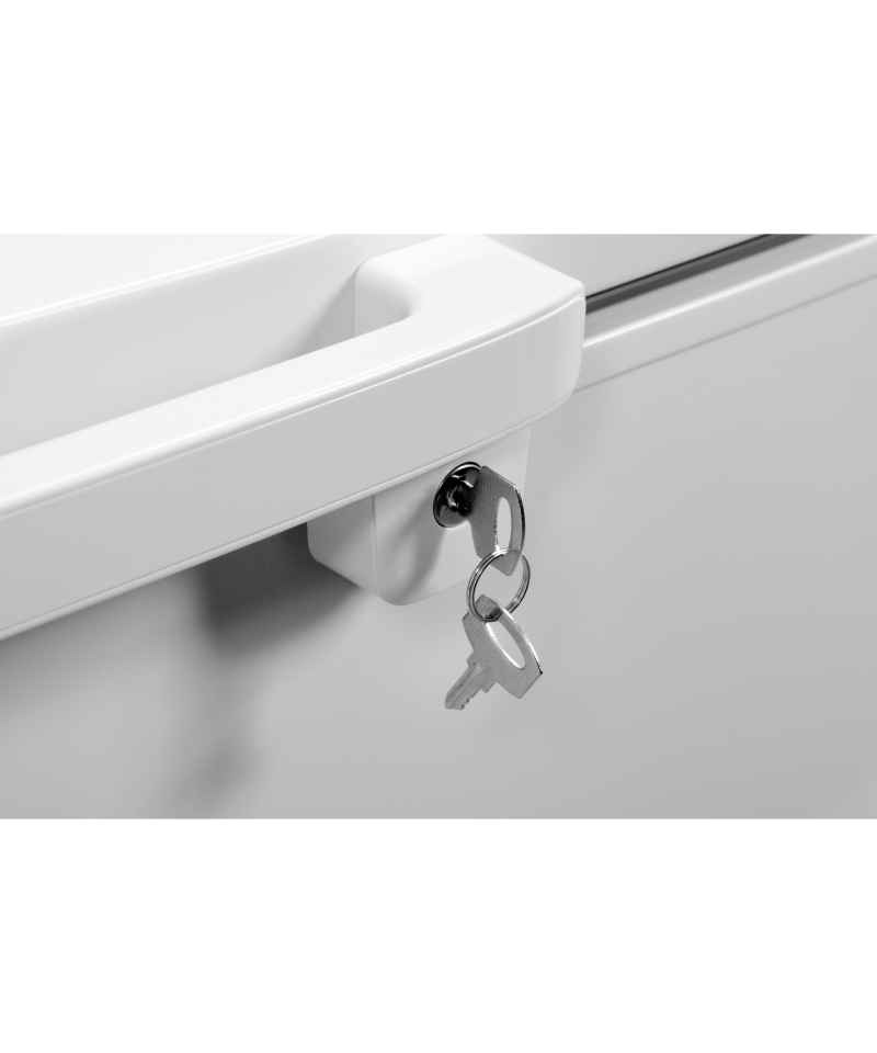 Profesjonalna zamrażarka skrzyniowa, idealna dla wymagającej gastronomii. Wyposażona w solidne, samozamykające drzwi uchylne z ergonomicznym uchwytem i wbudowanym zamkiem, zapewniającym bezpieczeństwo przechowywanych produktów.