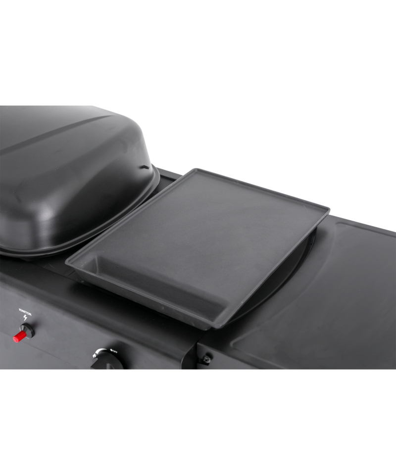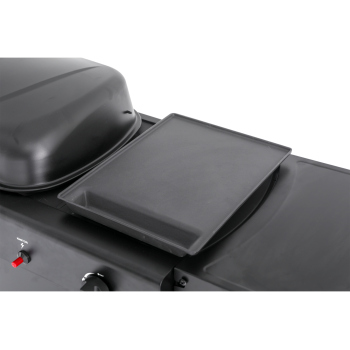 ✔ Żeliwna płyta: Oprócz klasycznego rusztu, grill wyposażono w palnik z solidną żeliwną płytą, doskonałą do smażenia delikatnych potraw.