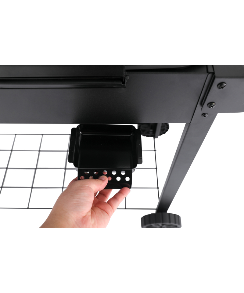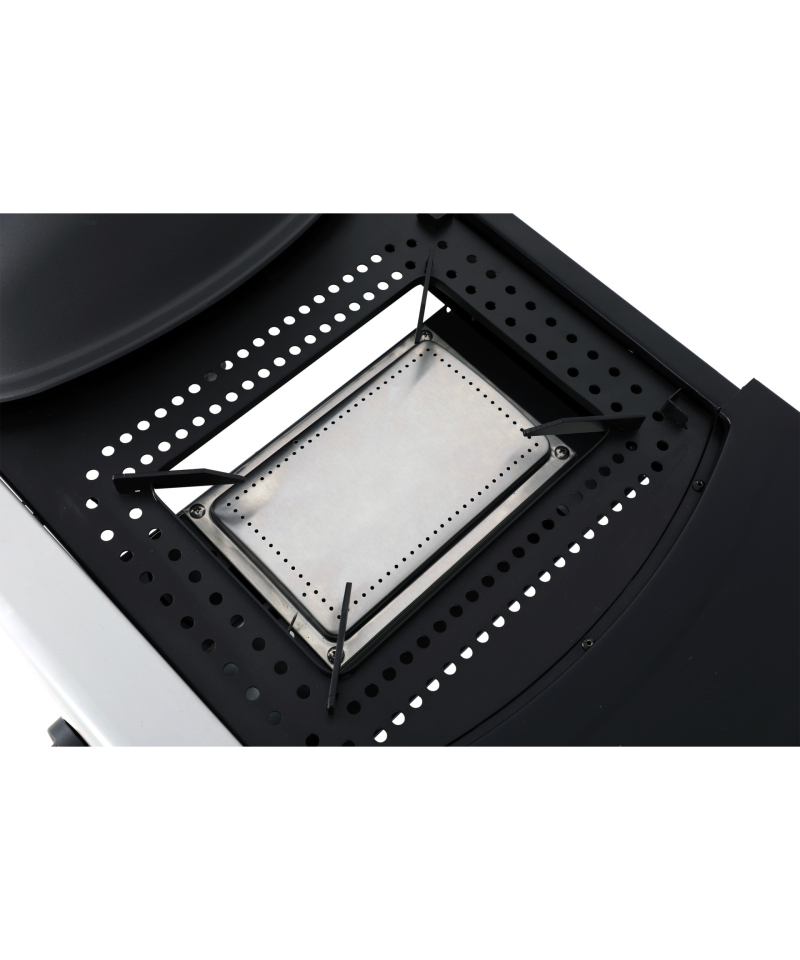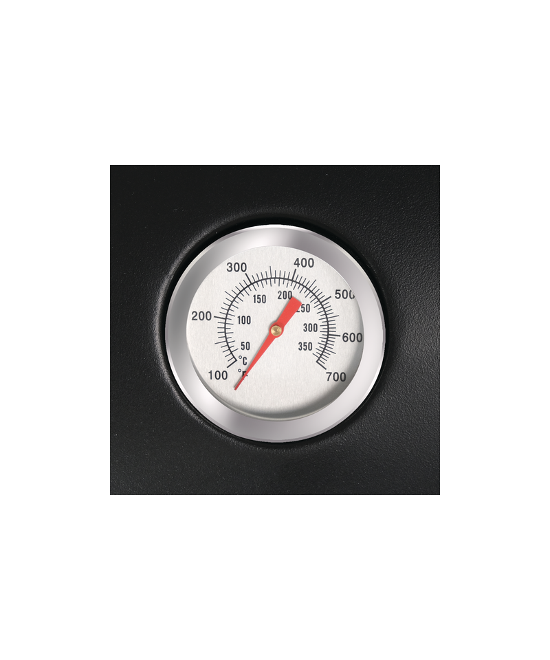 Solidna pokrywa z wbudowanym termometrem przyspiesza proces grillowania, skutecznie chroni przed wiatrem i pozwala na precyzyjną kontrolę temperatury. Dym zatrzymany pod pokrywą wzbogaca potrawy o głęboki smak i niezapomniany aromat.