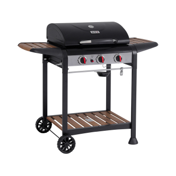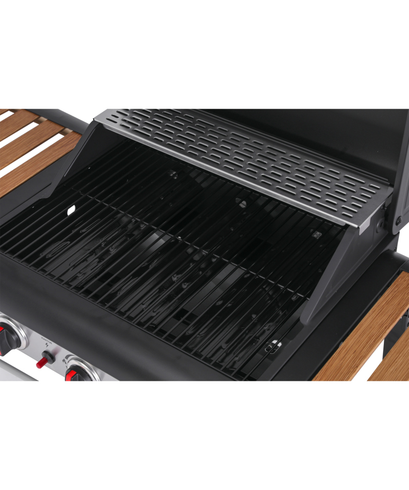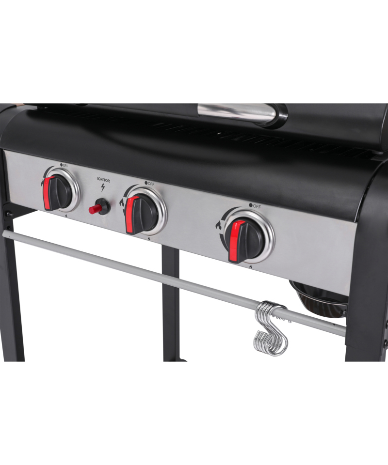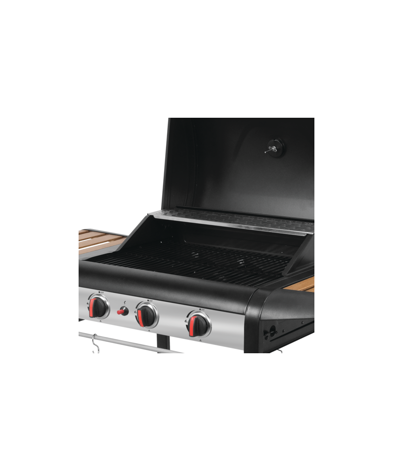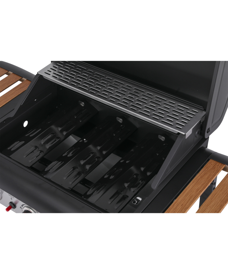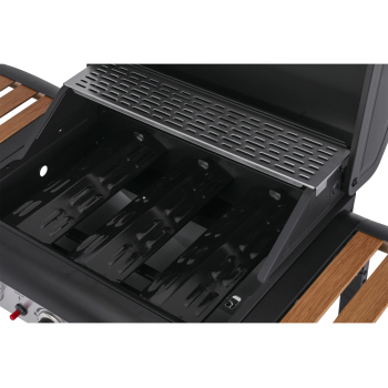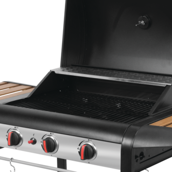 Grill gazowy Natori, wyposażony w trzy palniki główne o imponującej łącznej mocy 9 kW, gwarantuje efektywne i precyzyjne grillowanie strefowe, umożliwiając jednoczesne przygotowywanie różnorodnych potraw.