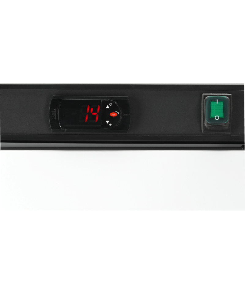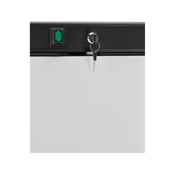 Szafa mroźnicza GN 2/1 z drzwiami szklanymi z wymuszonym obiegiem powietrza, z automat. odszranianiem i odparowaniem kondensatu gorącym gazem, z regulacją z wyświetlaczem cyfrowym. Centralne chłodzenie z odpływem kondensatu. Higienicznie wykonane wnętrze z zaokrąglonymi krawędziam