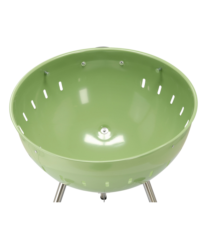 Głęboka misa zewnętrzna, wyposażona w ponad 20 otworów wentylacyjnych, gwarantuje znakomitą cyrkulację powietrza. Dzięki braku bezpośredniego kontaktu z żarem, węglem i ogniem, misa jest chroniona przed przepaleniem, zachowując estetyczny wygląd i funkcjonalność przez długie lata.