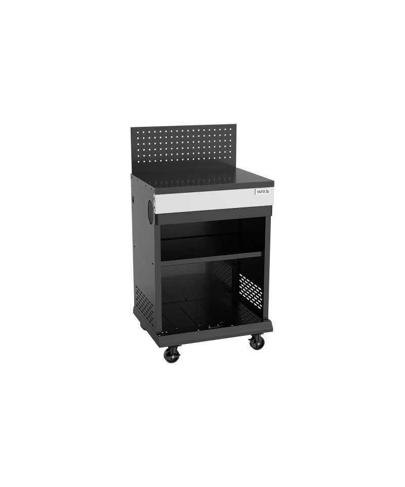 - Perforowana ścianka przednia umożliwia łatwy montaż dodatkowych haczyków lub uchwytów, zwiększając funkcjonalność