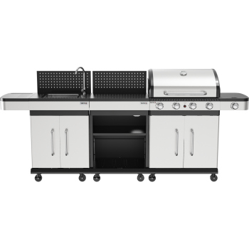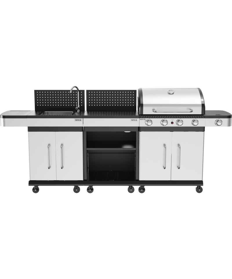 Ta modułowa szafka, wyposażona w zamykane drzwi, praktyczny zlew i funkcjonalny kran, została zaprojektowana z myślą o idealnym dopasowaniu do grilli gazowych YATO ZUSHI. Stanowi doskonałe rozwiązanie do łatwej rozbudowy Twojej strefy grillowej, oferując cenną dodatkową przestrzeń roboczą oraz bezpieczne miejsce do przechowywania wszystkich niezbędnych akcesoriów.