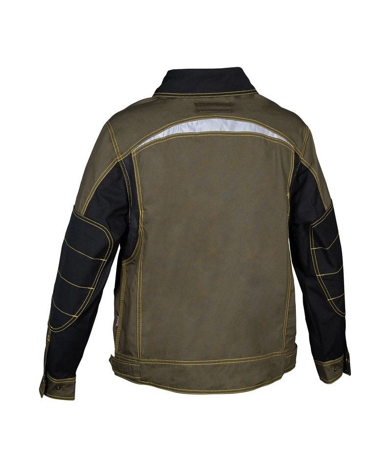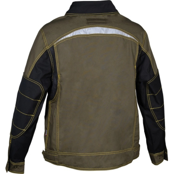 Zamek błyskawiczny i zatrzaski. Regulowane, wyściełane szelki. Uchwyt na kartę identyfikacyjną. Otwór boczny wzdłuż całej nogawki. Kieszenie z klapami na rzepy. Odblaskowe wkładki3M™ Scotchlite™. Reflective Material - 8906 Silver Fabric. Wzmocniony materiał na wysokości kolan.