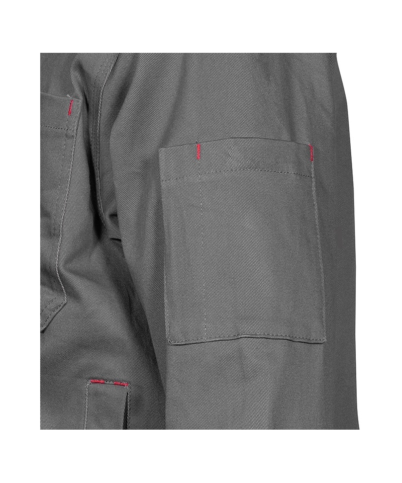 Model wyposażono w praktyczne rozwiązania, takie jak szerokie kieszenie z przodu i na piersi, zapinane na zatrzaski i rzepy, a także w kieszeń na długopis. Regulowany pas i mankiety pozwalają na precyzyjne dopasowanie, a przedłużony tył zapewnia dodatkową ochronę w pozycji pochylonej. Technologia 2 Way Stretch umożliwia naturalne dopasowanie materiału do ruchów ciała, zwiększając wygodę podczas pracy. Odzież oznaczona jako UNDETECTABLE zawiera niewielkie metalowe elementy, które nie są wykrywane przez standardowe systemy detekcji, co czyni ją bezpieczną w środowiskach wymagających szczególnej kontroli.
