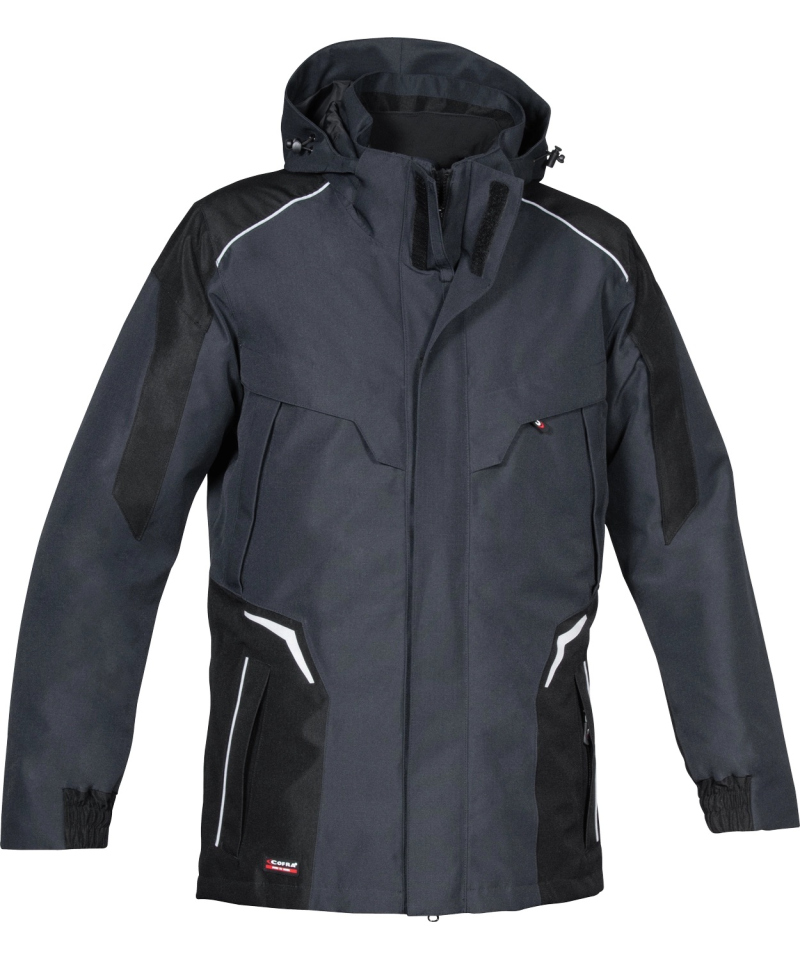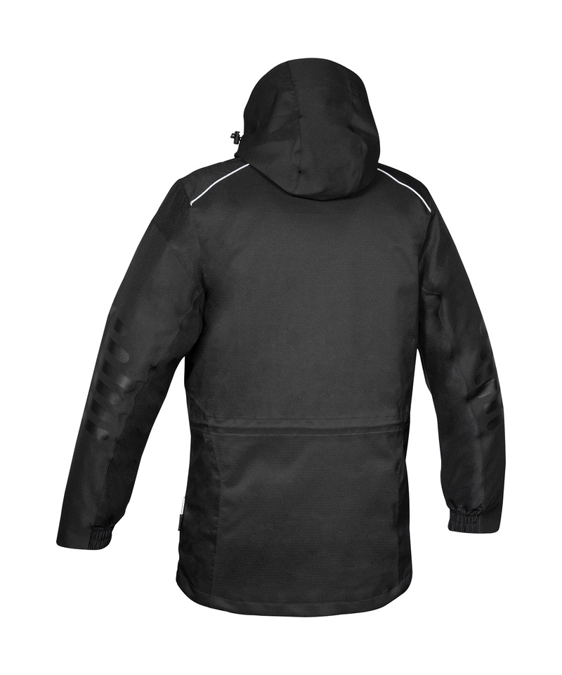 Wewnętrzna kurtka z elastycznego materiału z wyściółką DuPont™ Sorona® oferuje lekkość i wysoki komfort cieplny. Część zewnętrzna wyposażona jest w liczne kieszenie, w tym specjalną kieszeń E-WARD, która osłabia fale elektromagnetyczne emitowane przez telefony komórkowe. Regulowany kaptur, elastyczne mankiety i funkcja ogrzewania rąk w kieszeniach sprawiają, że parka sprawdza się zarówno w pracy terenowej, jak i w codziennym użytkowaniu w niskich temperaturach.
