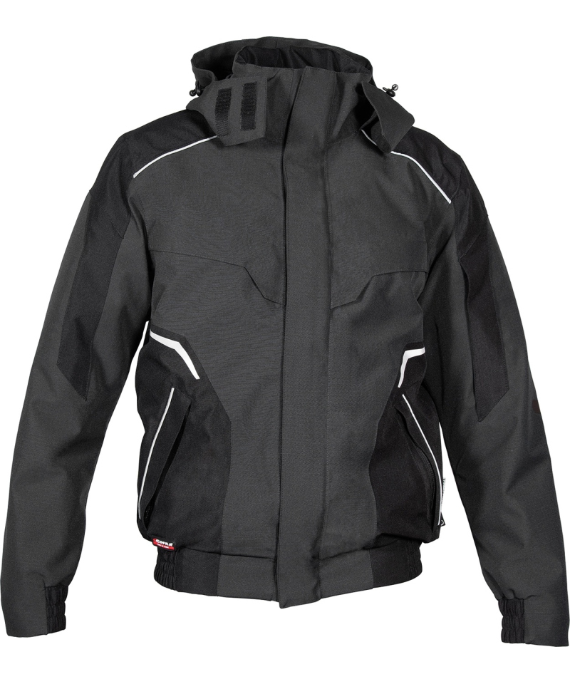 Kurtka DREZNA z linii WINTER to nowoczesna odzież robocza zaprojektowana dla pełnej ochrony w zimowych, wietrznych i mokrych warunkach. Wykonana z poliestru pochodzącego z recyklingu i wyposażona w membranę COFRA-TEX, gwarantuje doskonałą wodoodporność i oddychalność. Wnętrze kurtki zostało wypełnione innowacyjną wyściółką techniczną DuPont™ Sorona®, która zapewnia wysoką izolację cieplną przy zachowaniu niskiej objętości. Zgrzewane termicznie szwy, ripstopowa tkanina oraz wzmocnienia na łokciach zwiększają jej trwałość, a ergonomiczna konstrukcja w rejonie ramion zapewnia maksymalną swobodę ruchów.