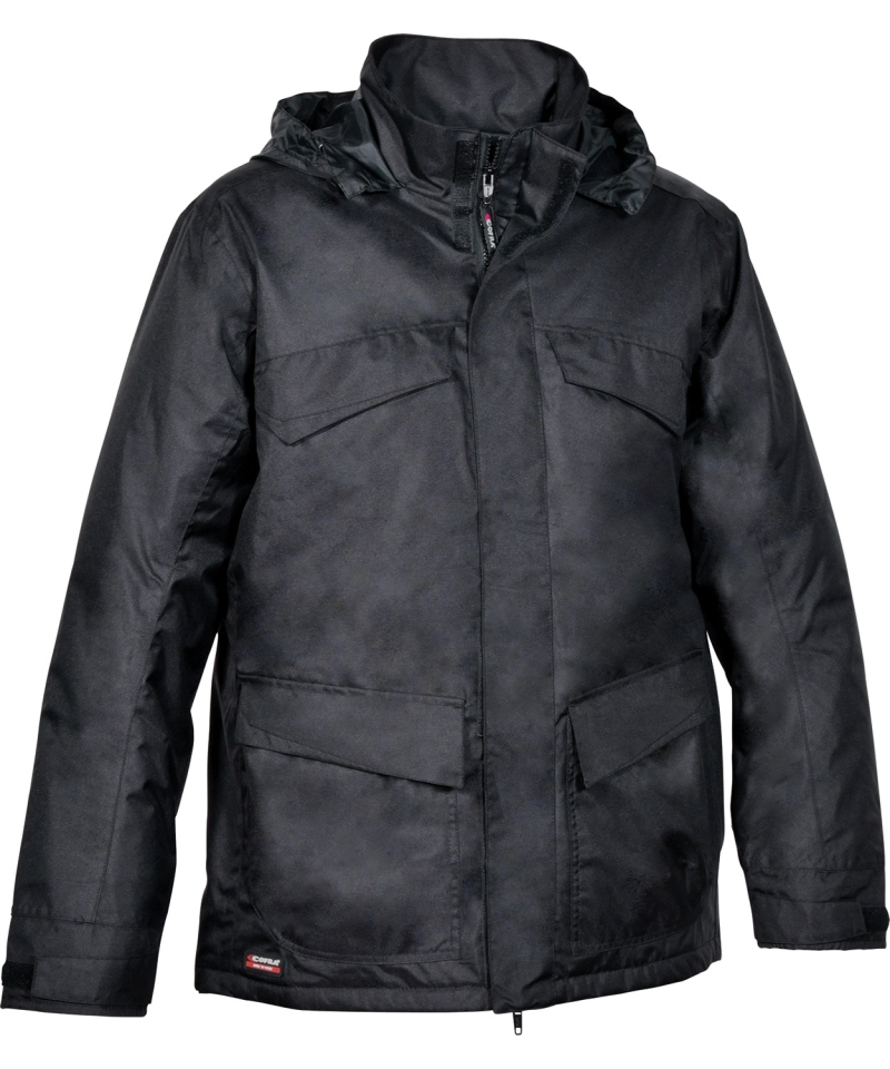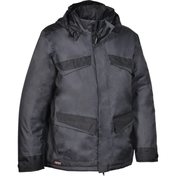 Kurtka wyposażona jest w dwie szerokie dolne kieszenie na rzep, dwie kieszenie na piersi, wewnętrzną kieszeń na rzep oraz ergonomiczny system rozmieszczenia szwów, który zwiększa komfort noszenia. Regulowany, chowany kaptur i mankiety na rzep pozwalają na pełne dopasowanie do sylwetki i warunków pogodowych. Szwy zgrzewane termicznie oraz podwójny zamek błyskawiczny dodatkowo zwiększają odporność na deszcz i wiatr. Elementy odblaskowe poprawiają widoczność po zmroku, a wypełnienie z poliestru zapewnia skuteczną izolację cieplną nawet przy bardzo niskich temperaturach. Kurtka spełnia najwyższe standardy ochrony, zachowując przy tym styl i wygodę użytkowania.
