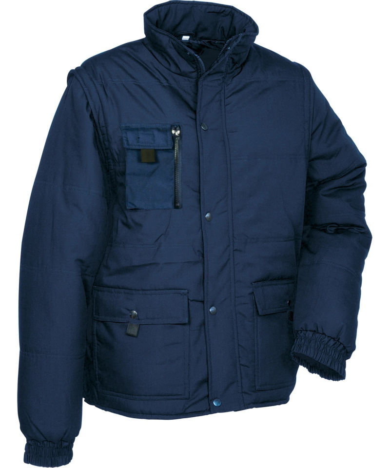 Model ENISEJ wyposażony został w praktyczne rozwiązania, które zwiększają funkcjonalność i wygodę pracy. Rękawy można łatwo odpiąć, przekształcając kurtkę w kamizelkę, co czyni ją doskonałym wyborem przez cały rok. Elastyczne mankiety i regulowany krój zapewniają ochronę przed zimnem oraz swobodę ruchów. Wewnętrzna kieszeń i specjalna kieszeń na telefon komórkowy umożliwiają bezpieczne przechowywanie niezbędnych przedmiotów.