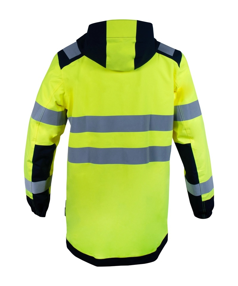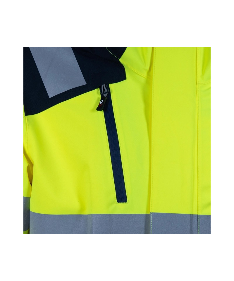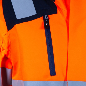 Kurtka wyposażona jest w liczne praktyczne rozwiązania, takie jak kieszeń na piersi z powlekanym zamkiem, dwie duże kieszenie przednie z klapkami, wewnętrzną kieszeń na rzep oraz specjalną kieszeń na telefon z tkaniny E-WARD, chroniącą przed falami elektromagnetycznymi. Wentylacja oraz siateczkowa podszewka zwiększają oddychalność, natomiast termicznie zgrzewane szwy i podwójna listwa zamka zapewniają pełną szczelność. Zgrzewane taśmy i wstawki odblaskowe gwarantują doskonałą widoczność nawet w trudnych warunkach oświetleniowych, co czyni YATOVĘ idealnym wyborem dla pracowników budowlanych, drogowych, przemysłowych i transportowych.
