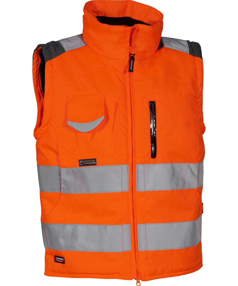 Kamizelka SIGNAL to funkcjonalny element odzieży przeznaczony dla osób pracujących w miejscach, gdzie wysoka widoczność jest priorytetem. Wykonana z poliestru powlekanego poliuretanem zapewnia trwałość i odporność na wilgoć, natomiast wyściółka z poliestru oraz polar w części naramiennej zwiększają komfort i izolację cieplną. Kamizelka posiada praktyczne rozwiązania, w tym liczne kieszenie zewnętrzne i wewnętrzne zamykane na zamek lub rzep oraz specjalną kieszeń na telefon komórkowy z materiału E-WARD, który chroni przed szkodliwym promieniowaniem elektromagnetycznym.
