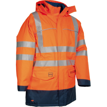 Model wyposażony został w liczne kieszenie, w tym kieszeń typu napoleon oraz pojemne kieszenie na piersi i w dolnej części kurtki, co ułatwia przechowywanie narzędzi i akcesoriów. Odpinany i regulowany kaptur oraz elastyczne mankiety umożliwiają dopasowanie do indywidualnych potrzeb, a odblaskowe paski ognioodporne zwiększają widoczność użytkownika. Parka ST. PETERSBURG jest zgodna z wymaganiami środowisk ATEX, dzięki czemu idealnie sprawdza się w branży petrochemicznej, gazowej i przemysłowej. Odzież spełnia normy EN ISO 13688, EN 1149-5, EN 343 3-3-X, EN ISO 14116 oraz EN 13034 Type 6(FR), co potwierdza jej wysoki poziom ochrony i bezpieczeństwa.