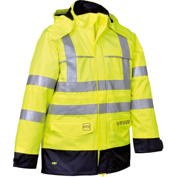 Kurtka ST. PETERSBURG to zaawansowana technologicznie parka z linii FLAME RETARDANT, zaprojektowana do pracy w wymagających środowiskach, gdzie konieczna jest jednoczesna ochrona przed ogniem, wiatrem i wilgocią. Dwuczęściowa konstrukcja składająca się z zewnętrznej powłoki oraz odpinanego wewnętrznego elementu zapewnia wszechstronność i funkcjonalność w różnych warunkach pogodowych. Zewnętrzna część wykonana z mieszanki poliestru i włókien węglowych z powłoką poliuretanową chroni przed wodą i wiatrem, a wszystkie szwy są zgrzewane termicznie, co gwarantuje pełną szczelność. Wewnętrzna kurtka z bawełny z dodatkiem włókien węglowych oraz wypełnieniem z niepalnego poliestru zapewnia komfort cieplny i bezpieczeństwo użytkownika.