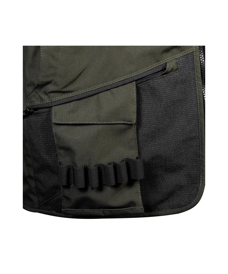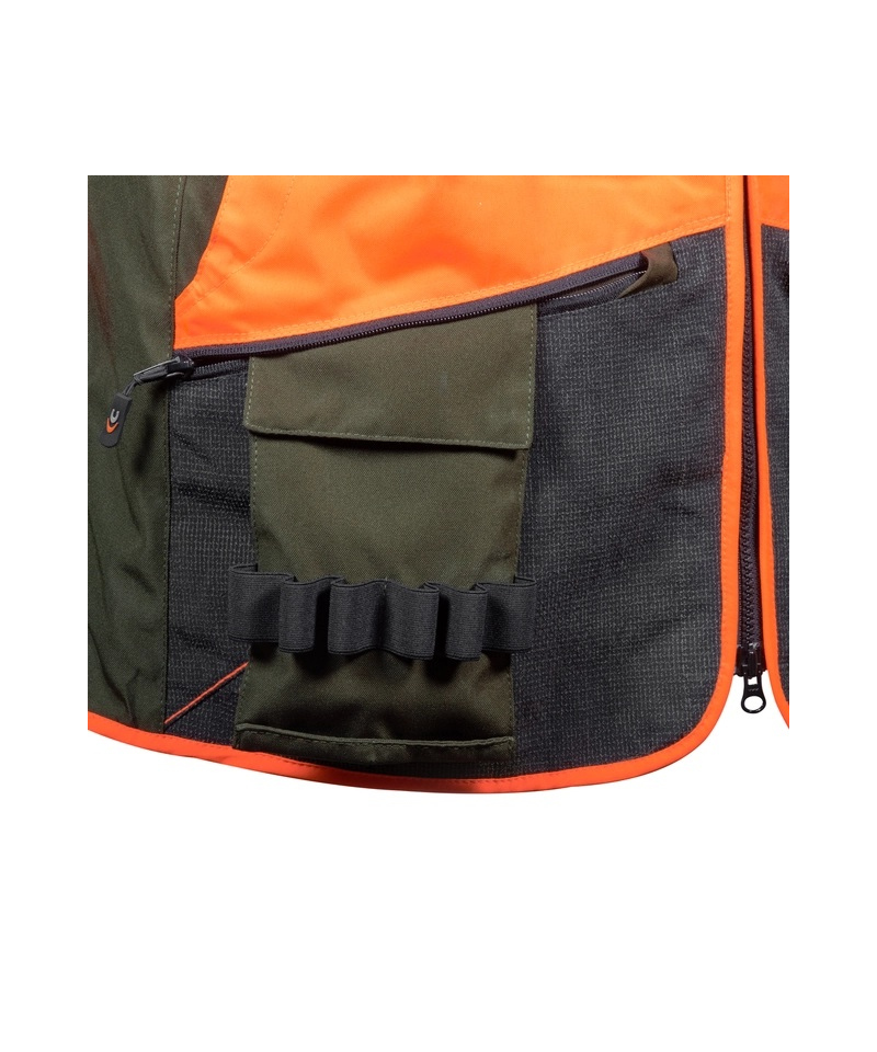 Kamizelka wyposażona jest w liczne kieszenie: od funkcjonalnych kieszeni z przodu i wewnętrznych, po specjalne ładownice do karabinu i karabinka, a także pojemną kieszeń wodoodporną z tyłu. Dodatkowe udogodnienia, takie jak kieszenie na radio, uchwyt w kształcie litery D czy odporność na zabrudzenia i przetarcia, sprawiają, że model ten jest idealny dla osób pracujących w rolnictwie lub spędzających czas na polowaniu. Odzież spełnia normę EN ISO 13688 oraz posiada certyfikat OEKO-TEX®, co potwierdza bezpieczeństwo użytych materiałów.