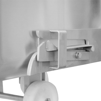 Po jego zwolnieniu tok pracy zostaje przerwany, zgodnie z zasadami bezpieczeństwa, a pojemnik pozostaje w pozycji wcześniej zajmowanej. Zamontowanie dodatkowej suwni buforowej umożliwia precyzyjne dozowanie i wydłużenie czasu opróżniania. Urządzenie dostarczone jest ze stopkami do przymocowania stałego (WT341) lub wyposażona w koła (WT342). Istnieje możliwość wyprodukowania wywrotnicy z niższym lub wyższym poziomem wysypu – zgodnie z potrzebami.